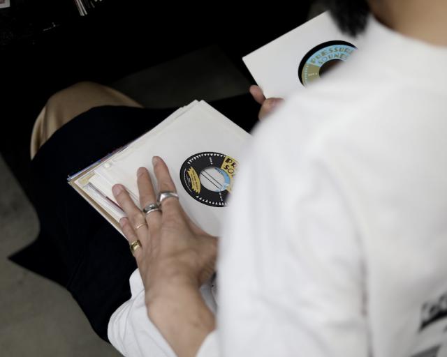 「BEATINK Listening Space」から目と鼻の先、大阪農林会館300号室に拠点を構えるセレクトショップ odd numbers のオーナー。テーラードジャケットから古着、陶器や小物まで幅広くセレクトを行うSWEさんは、スタイリスト〜デザイナー〜ミュージシャン〜DJと、自身の活動も多岐に渡って広がりを見せている。