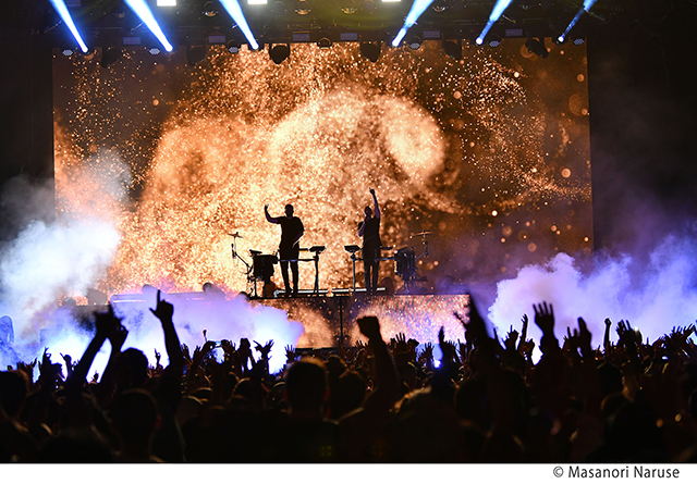 YouTubeにアップされたフジロックの公式インタビューによると、彼らはライヴを通じて表現したい感情の流れをホワイトボードに書き出し、誰がどのタイミングで登場するかなど、緻密に計算しながらペース配分を組み立てているそうだ。さらに、ヴィジュアル担当や照明、エンジニアなど、大勢のスタッフを交えつつステージを設計しているという。そういった制作背景すら頷けるほど、彼らのエンターテインメントは隙がなかったように思う。ここまでのビッグ・スケールと完璧主義を両立させたアクトは、フジロックの歴史においても限られるのではないか。